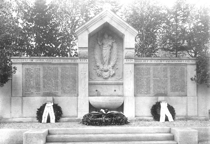 | Einweihung des Denkmals 1924, später blieb nur noch der Mittelteil stehen, links und rechts wurde es abgebrochen | ||||||