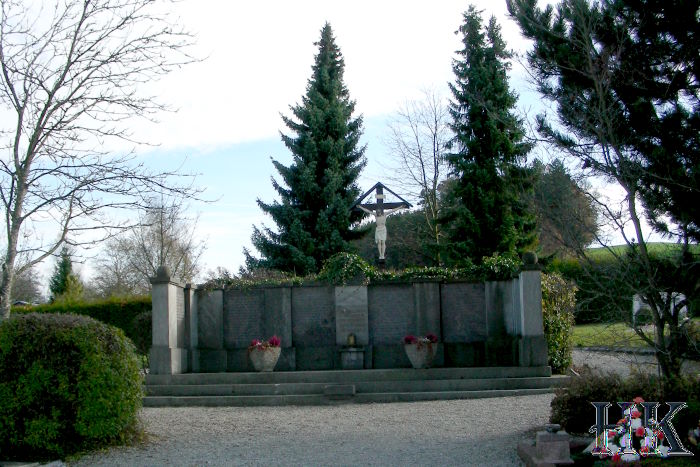 Denkmal und Grabsteine auf dem Gemeindefriedhof nordöstlich Pfarrkirche St. Martin |