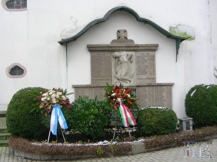 Inschrift: Hl. Sebastian bitte für uns ! Sie gaben ihr Leben für uns und ihre Heimat 1914 - 1918 1939 - 1945 |