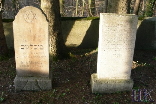 | Grabstein links für Aron Michles (1897-1945) | Grabstein für Heinrich Lewin (1928-1946) | ||||||