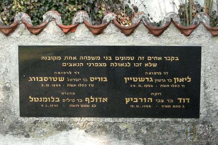 Gedenktafeln und Grabsteine auf denen Opfer verzeichnet sind