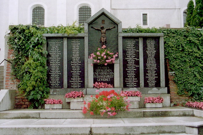DIESE SIND ES, WELCHE GEKOMMEN SIND AUS GROSSER TRÜBESAL 1914 - 1918 FÜR GOTT UND VATERLAND OPFERTEN IHR LEBEN AUS DER GEMEINDE ALTEGLOFSHEIM 1939 - 1945 UNSEREN GEFALLENEN UND VERMISSTEN IN DANKBARKEIT GEWIDMET |