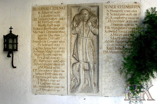 Grab des Pfarrers Sylvester Lutz Pfarrer in Bedernau geboren in Hafenhofen am 18.12.1864 zum Prister geweiht am 22.03.1890 Pfarrer dahier seit 29.07.1897 gestorben am 01.07.1919
