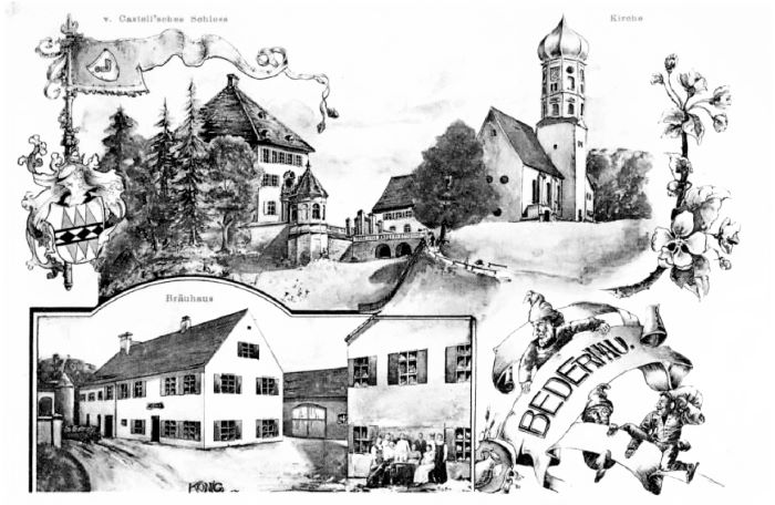 Bereits im Jahre 1453 wurde das Dorf an eine Memminger Bürgerfamilie verkauft. Diese behielt es, was seinerzeit selten war, 2 Jahrhunderte lang. Der Bayer. Kurfürst erwarb 1763 die Besitzung Bedernau, ließ das Schloß von Grund auf erneuern, bis 1782 schließlich die Herrschaft von Johann Sebastian von Castell übernommen wurde. Noch heute besitzen die Freiherrn von Castell große Ländereien in und um Bedernau. Bekannt ist, daß im Jahre 1673, bedingt durch Schwedeneinfälle und die Pest, die Einwohnerzahl auf 18 Familien zurückgegangen ist. Es dauerte lange Zeit, bis Bedernau wieder zu einem besiedelten Dorf wurde. Große Probleme hatte Bedernau nach dem 2. Weltkrieg, als zu den ca. 600 Einwohnern noch 290 Flüchtlinge und Vertriebene hinzukamen. Der Zustrom bewirkte auch, daß die Landwirtschaft mehr und mehr zurückgedrängt wurde. Überörtlich bekannt wurde Bedernau durch die seit 1964 erfolgte Erdölförderung, deren Pumpanlagen in der näheren Umgebung Bedernaus auszumachen waren. Beherrscht wird jedoch das Dort durch die alles überragende Barockkirche, das angrenzende Schloß, die Schloßwirtschaft, den Zehenstadel und den neu erbauten Pfarrhof. Sehenswert ist auch die Weitbekannte Wallfahrtskirche Maria Baumgärtle, ca 5km südwestlich von Bedernau gelegen. Die 1721 erbaute Kirche wurde 1827 wieder abgebrochen. Die heutige Wallfahrtskirche wurde 1882/1883 neu erbaut, wobei der Hochaltar mit Gnadenbild von der vorhergehenden Kirche erhalten und wieder verwendet wurde.   "Einsendung von Florian Simon"