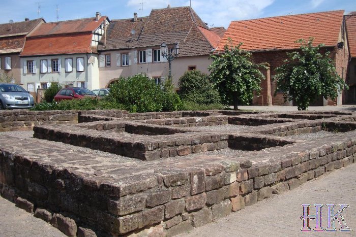 Nikolauskapelle Um die Wende des X. zum XI. Jahrhundert wurde die Kapelle erbaut. Sie diente innen und außen als Bestattungsort. Im XIII. und XIV. Jahrhundert wurden Mitglieder des Geschlechts der Lichtenberger hier begraben. Durch den Bau der Kapelle wurden zahlreiche Kindergräber und Ort wo Eisen (Frischfeuer) verarbeitet wurde zerstört. Das Ganze liegt auf einer galloromanischen Siedlungsschicht. Die Kapelle wurde um das Ende des XVIII. Jahrhunderts vollständig abgetragen, nachdem sie eine Zeitlang zu profanen Zwecken diente. Der Stiftshof Im Mittelalter hinter der Einfriedungsmauer, um die St. Peter und Pauluskirche, befanden sich die Gebäude der Benediktinerabtei die im VIII. Jahrhundert gegründet wurde. Im Jahre 1495 veranlaßte Papst Alexander VI., daß aus der Abtei ein Kollegialstift wurde, dessen Vertreter die Chorherren waren. Nach 1760 beschloß das Stift von Neuweiler die Umgebung der Sankt Peter und Pauluskirche zu räumen, um in der Bauflucht der Propstei eine Reihe Häuser zu bauen die für die wichtigsten Würdenträger des Stifts bestimmt waren. Zur selben Zeit wurde die ehemalige gotische Fassade durch den heute noch erhaltenen Engelsturm ersetzt. Durch die französische Revolution im Jahre 1789 wurde das Besitztum des Stifts beschlagnahmt und als Nationalgut verkauft. So konnten sich mehrere höhere Offiziere rund um den Platz niederlassen. Die Propstei wurde im Jahre 1793 zur Residenz des Feldmarschalls Clarke (1765-1818) zukünftiger Kriegsminister von Napoleon I. |