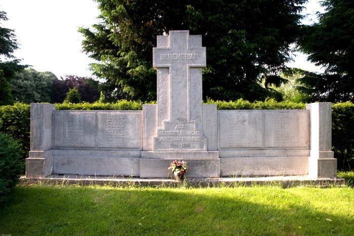 Hier ruhen verstorbene Französische Flüchtlinge, Niederländer und 7 Deutsche Soldaten vom Weltkrieg 1914 - 1918 Inschrift des Denkmals: Aux Réfugiés francais morts aux pays-bas 1914-1918 |
