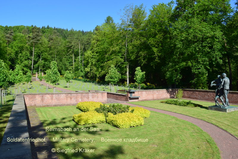 Dieser Soldatenfriedhof wurde im Jahr 1940 von der deutschen Wehrmacht als Waldfriedhof angelegt. In den 50er Jahren erfolgte eine Neugestaltung. 1970 wurden neue Grabzeichen in Form von Bronzekreuzen aufgestellt. Der große Eingangshof ist von einer Mauer umfriedet. Hier fanden insgesamt 314 Opfer des zweiten Weltkrieges verschiedener Nationen Ihre letzte Ruhe, der jüngste 17 Jahre der älteste 55 Jahre. Davon 290 Deutsche, 17 Unbekannte und 7 Sowjet. Weitere Details zur Kriegsgräberstätte Reimsbach |