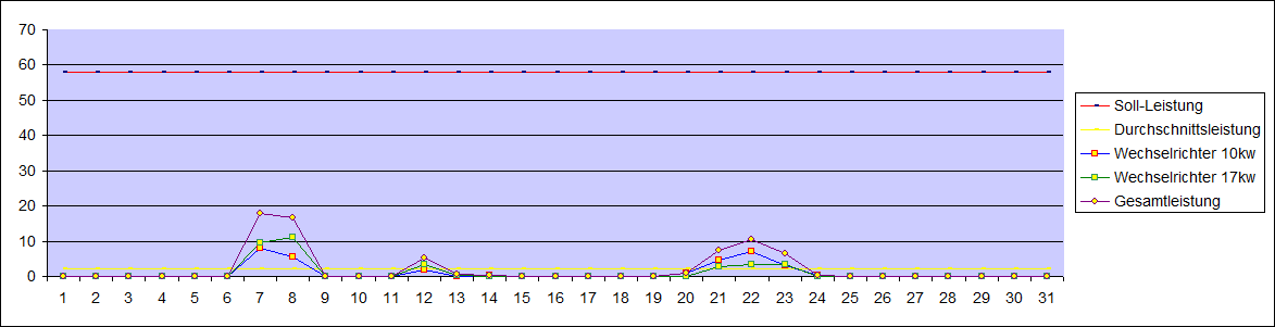 | Leistung an den Wechselrichtern | 65,90 kw | |||||||||||||||||||||||||||||||