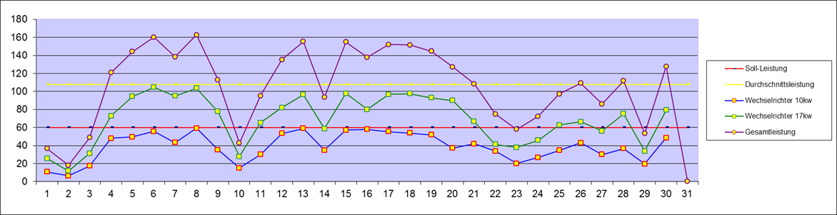 | Leistung an den Wechselrichtern | 3.232,20 kw | Vormonat | Neu | |||||||||||||||||||||||||||||