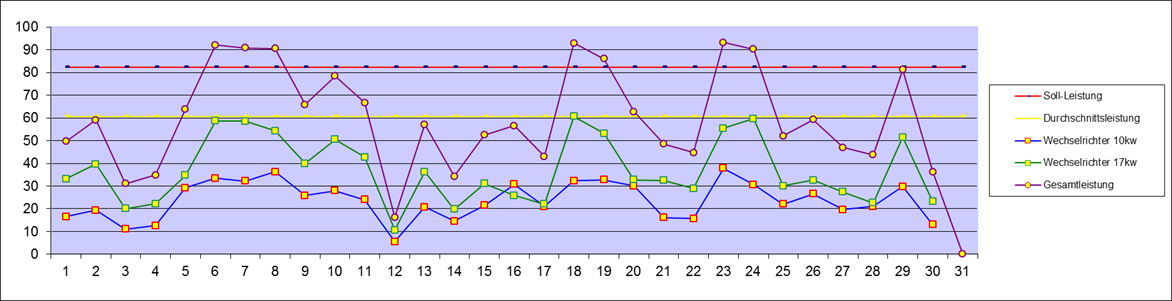| Leistung an den Wechselrichtern | 1.820,50 kw | Vormonat | Neu | |||||||||||||||||||||||||||||