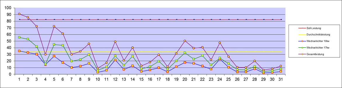 | Leistung an den Wechselrichtern | 1.057,50 kw | Vormonat | Neu | |||||||||||||||||||||||||||||