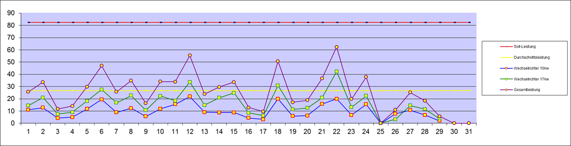 | Leistung an den Wechselrichtern | 775,40 kw | Vormonat | Neu | |||||||||||||||||||||||||||||