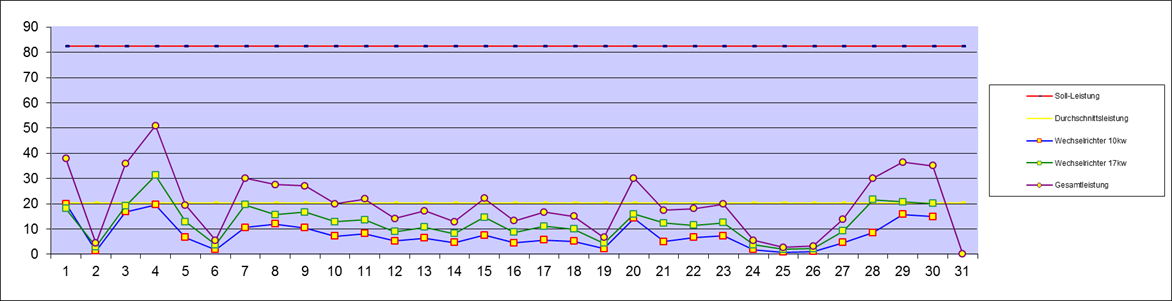 | Leistung an den Wechselrichtern | 609,90 kw | Vormonat | Neu | |||||||||||||||||||||||||||||