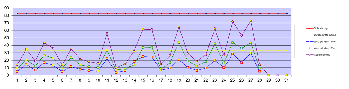 | Leistung an den Wechselrichtern | 968,40 kw | Vormonat | Neu | |||||||||||||||||||||||||||||