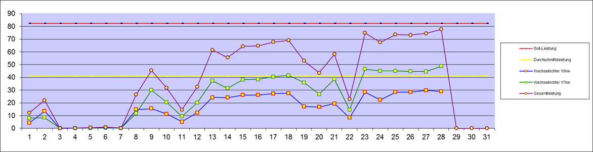| Leistung an den Wechselrichtern | 1.189,60 kw | Vormonat | Neu | Solarzählerstand | ||||||||||||||||||||||||||||
