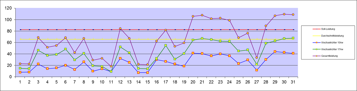| Leistung an den Wechselrichtern | 2.038,40 kw | Vormonat | Neu | Solarzählerstand | ||||||||||||||||||||||||||||