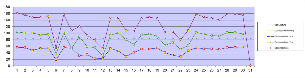 | Tatsächliche Leistung am Zähler | 3.955,20 kw | 1.542,53 € | Solaranlage in Betrieb | 6228 | 6403 | 175 | Std. | 204.225 kw | ||||||||||||||||||||||||