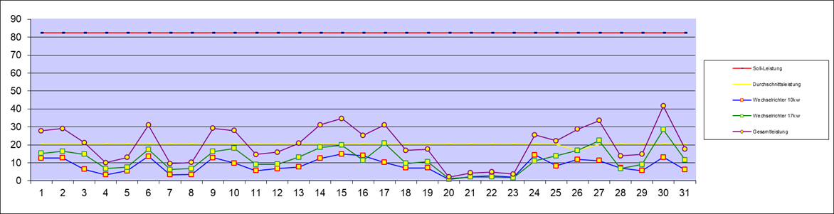 | Leistung an den Wechselrichtern | 629,50 kw | Vormonat | Neu | Solarzählerstand | ||||||||||||||||||||||||||||