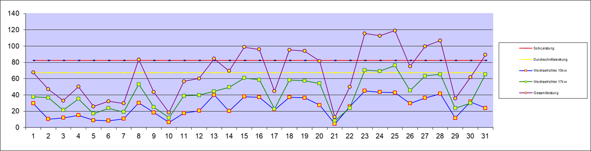 | Leistung an den Wechselrichtern | 2.090,00 kw | Vormonat | Neu | Solarzählerstand | ||||||||||||||||||||||||||||