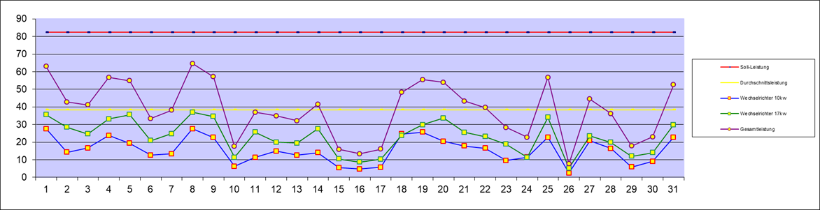 | Leistung an den Wechselrichtern | 1.190,30 kw | Vormonat | Neu | Solarzählerstand | ||||||||||||||||||||||||||||