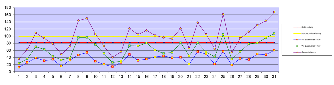 | Leistung an den Wechselrichtern | 3.059,70 kw | Vormonat | Neu | Solarzählerstand | ||||||||||||||||||||||||||||