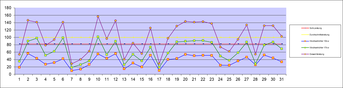 | Leistung an den Wechselrichtern | 3.099,70 kw | Vormonat | Neu | Solarzählerstand | ||||||||||||||||||||||||||||