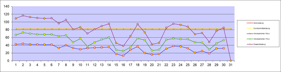 | Leistung an den Wechselrichtern | 2.490,20 kw | Vormonat | Neu | Solarzählerstand | ||||||||||||||||||||||||||||