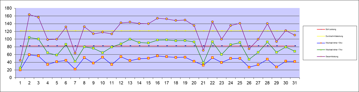 | Leistung an den Wechselrichtern | 3.773,20 kw | Vormonat | Neu | Solarzählerstand | ||||||||||||||||||||||||||||