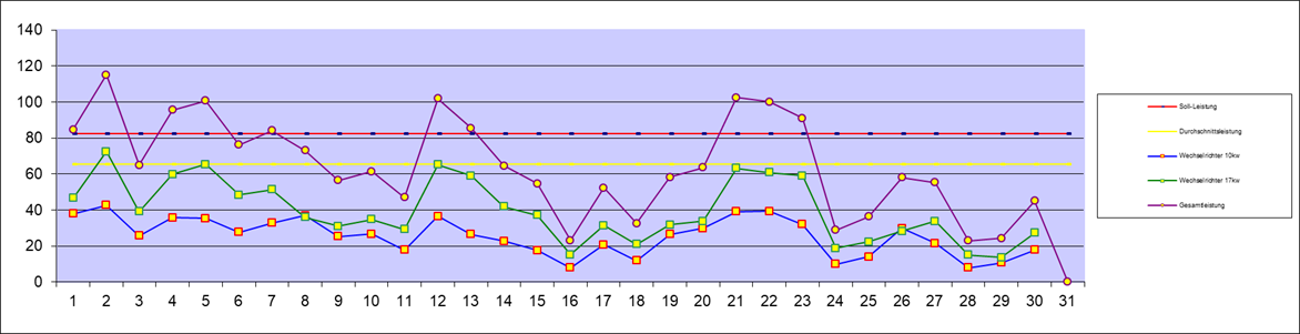 | Leistung an den Wechselrichtern | 1.960,70 kw | Vormonat | Neu | Solarzählerstand | ||||||||||||||||||||||||||||