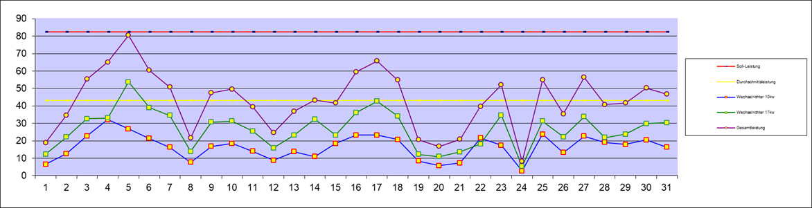 | Leistung an den Wechselrichtern | 1.335,10 kw | Vormonat | Neu | Solarzählerstand | ||||||||||||||||||||||||||||
