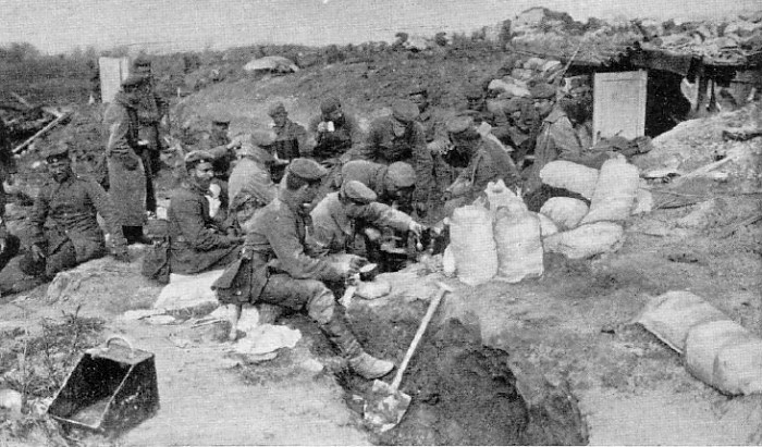 Die 2. Kompanie beim Morgenkaffee während des Schanzens | |