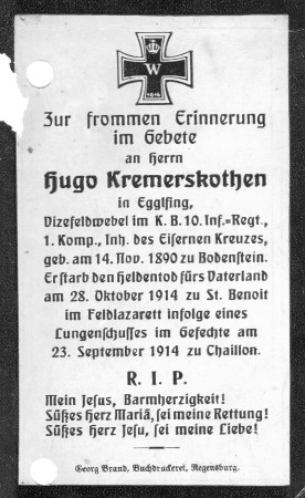 Zusatzinformationen zum Gefallenen Hugo Kremerskothen