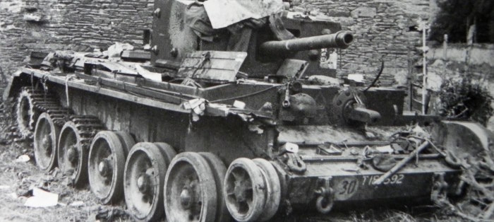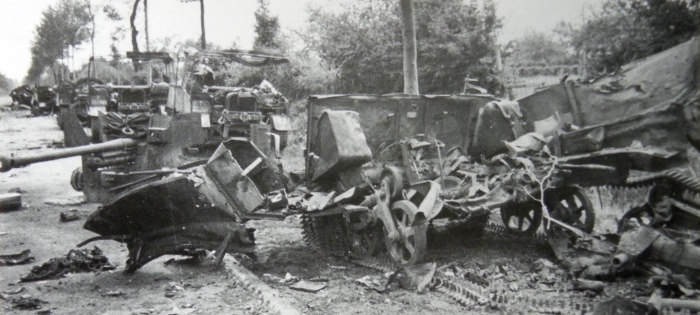 Ein Teil der zerschossenen 24 Panzer an der Straße von Villers-Bocage von der 7. britischen Panzerdivision | |||||